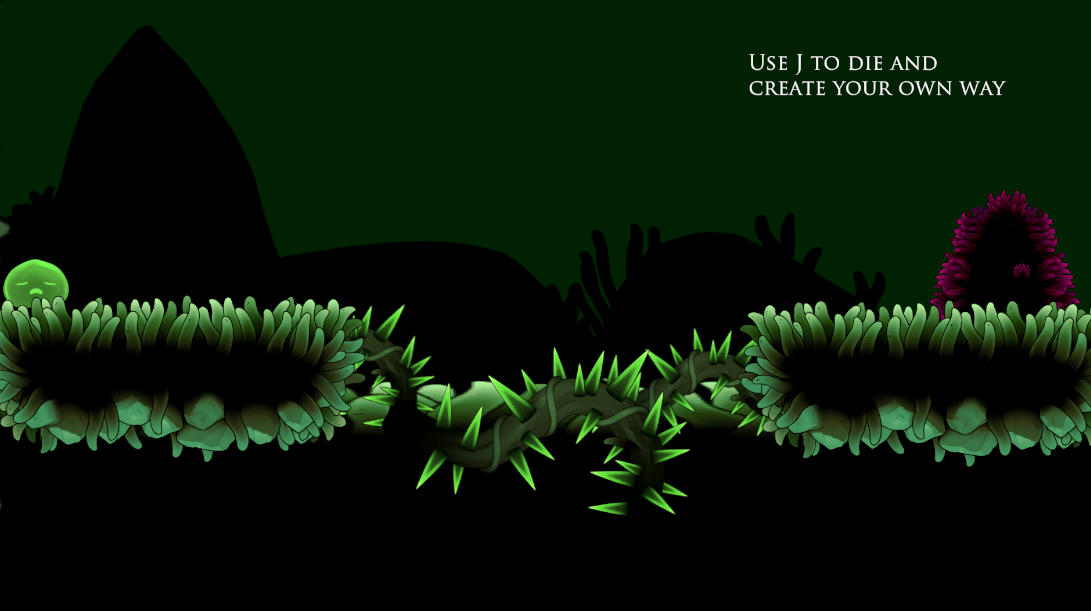 Our slime friend has the ability die when it wants to and leave a body behind. Those bodies have different kinds of abilities. You can use them as platforms, push them around or get a speed boost from them. Try to navigate your way around the jungle and help Gloop escape.